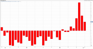 As exports increase, imports have slowed down notably. The YoY Imports posted its 2nd slowing down in a row. Something we haven’t seen since 2011.