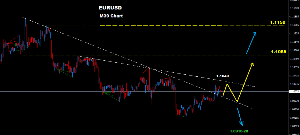 طالما السوق مستمر بالتداول فوق مستويات 1.0950 فان مزيد من الارتفاع سيكون متاحا بالسق فيما و فوق مستويات 1.1040 توقع مزيد من الارتفاع نحو مناطق 1.1085 و 85-1.1150