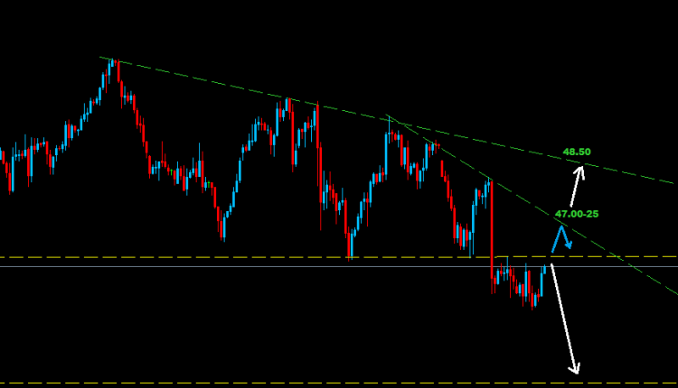 فوق مستويات 46.00 فان النفط قد يتجه لمزيد من الارتفاع حيث سيواجه مستويات مقاومة على مناطق 25-47.00 و 48.50