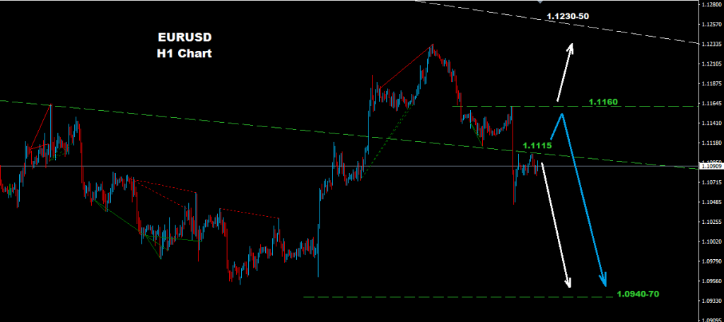 فوق مستويات 1.1115 فان السوق قد يمتلك فرص مزيد من الارتفاع حيث سيواجه مستويات مقاومة اخرى على اسعار 1.1160 والتي قد تدفع بعودة الترند الهابط نحو اهداف 70-1.0940