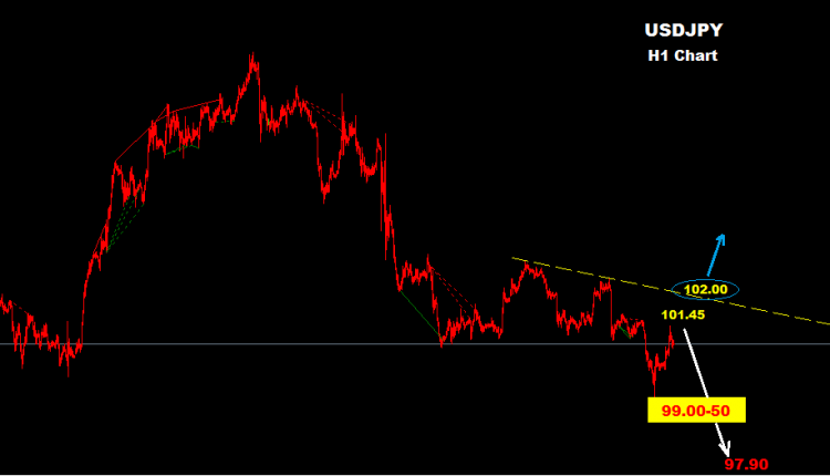 تحت مستويات 99.00 مزيد من التراجع سيكون متاح باتجاه اسعار 97.90