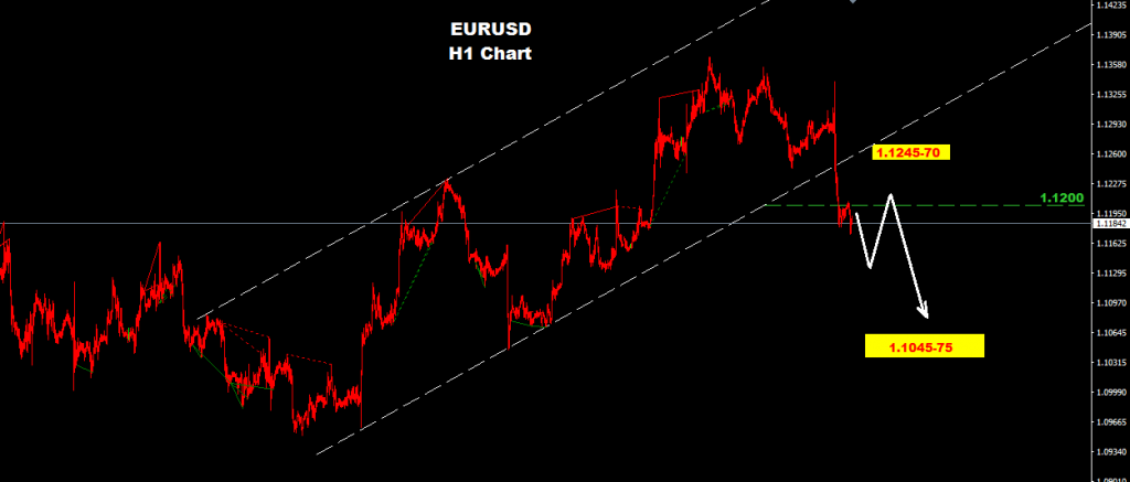 تراجع اليورو تحت مستويات 1.1200 مما قد يضع السوق ضمن مسار هابط نحو مناطق 75-1.1045