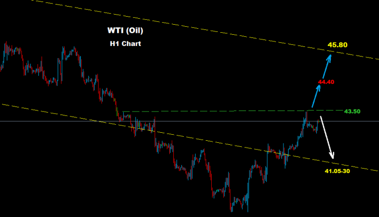فوق مستويات (43.50) توقع مزيد من الارتفاع نحو مستويات 44.40 فيما وفوق هذه المستويات توقع اختبار للترند الهابط عند مستويات 45.80