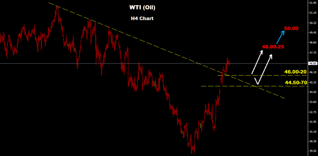 تحت مستويات 46.00 فان السوق قد يتجه لمزيد من التراجع حيث مستويات الدعم الثانيه على اسعار 70-44.50 والتي طالما السوق متماسك فوقها فان حركة صاعدة جديده قد تدفع نحو اهداف 25-48.00
