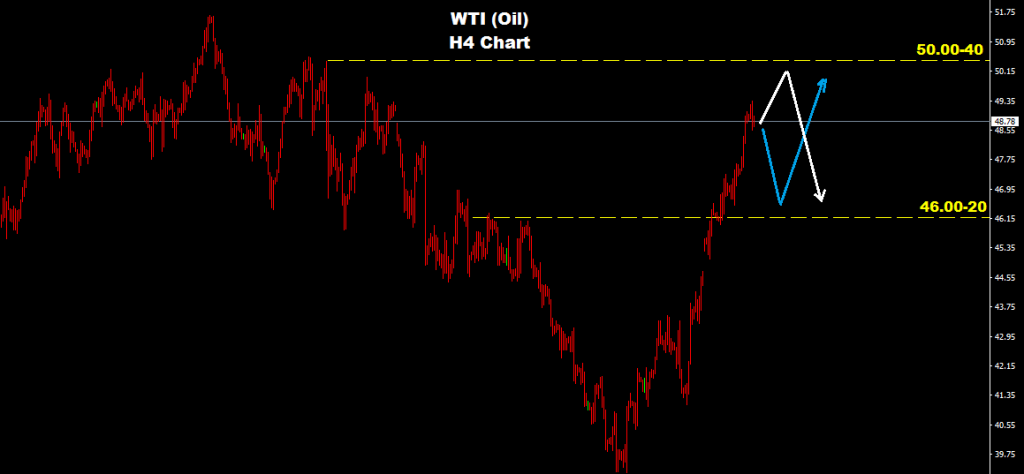 فيما توجه السوق لمزيد من الارتفاع مع توقعاتنا لاحتمالية منطقة تداول بين مستويات 46.00 و 50.40