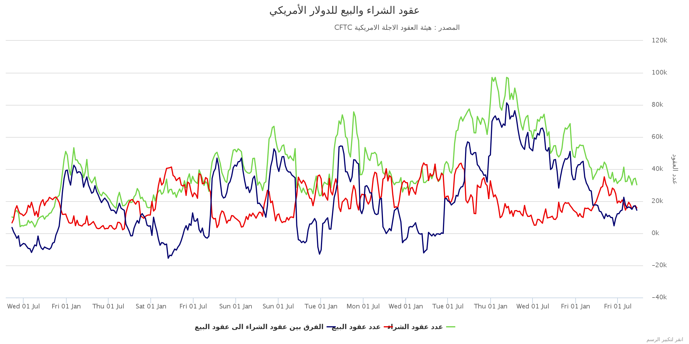 من الجهة الاخرى, اظهر تقرير التزامات المتاجرين للدولار الامريكي عدم وجود نمو في عقود الشراء للدولار. وكما هو موضح على الرسم, وبالمقارنة مع عدد عقود الشراء للدولار في يناير من العام الجاري الى الان, نرى انخفاض حاد وتدريجي في عقود شراء الدولار الامريكي. وبنفس الوقت, نرى الارتفاع الواضح في عقود البيع ايضا, وهو ما ادى الى انخفاض الفارق ما بين عقود الشراء الى عقود البيع حالياً الى قرب مستويات الصفر.