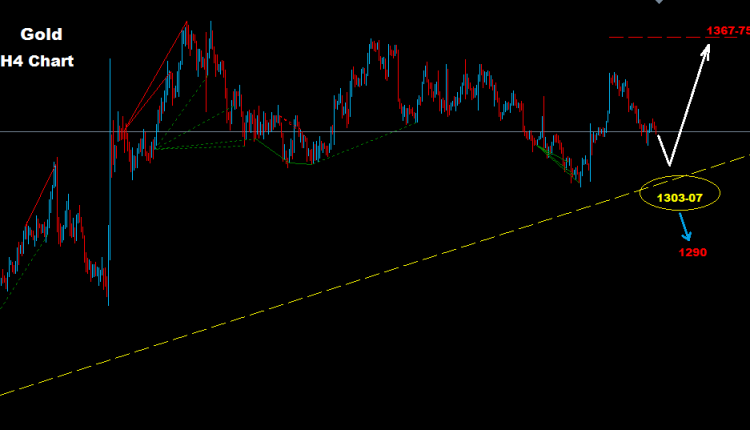 لا يزال الذهب ضمن منطقة تداول فيما تراجع السوق تحت مستويات 1328 قد يشير الى مزيد من التراجع التصحيحي على المدى القريب