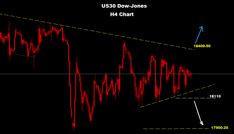 لا يزال مؤشر الداو يحافظ على تداولاته ضمن منطقة تداول بين مستويات الدعم 18100 و مستويات المقاومة 18400