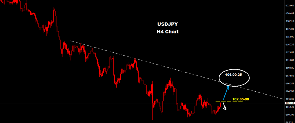 فوق مستويات 102.80 فان السوق قد يدخل ضمن نطاق موجه صاعده جديدة قد تستهدف مستويات 25-106.00 على المدى القصير