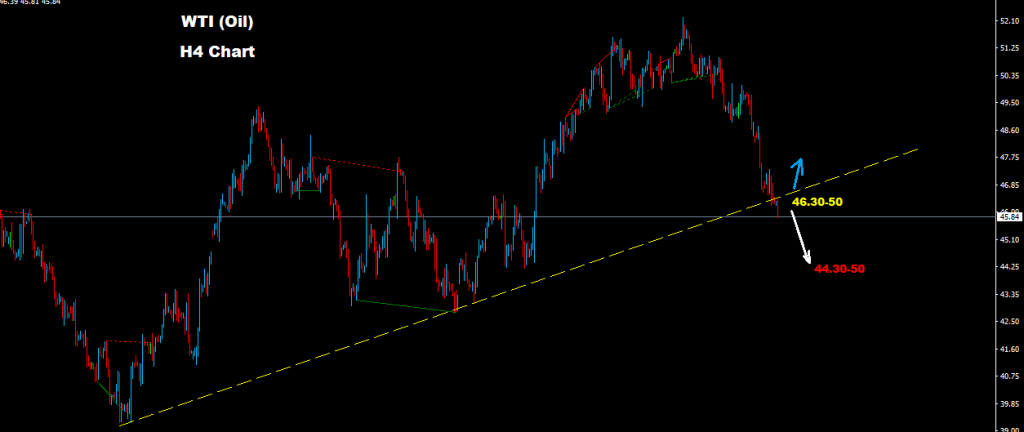 يواجه السوق الان مستويات مقاومة على مناطق 50-46.30 حيث و طالما السوق يتداول تحت هذه المستويات فان الموجه الهابطة ستستمر نحو اهداف 50-44.30