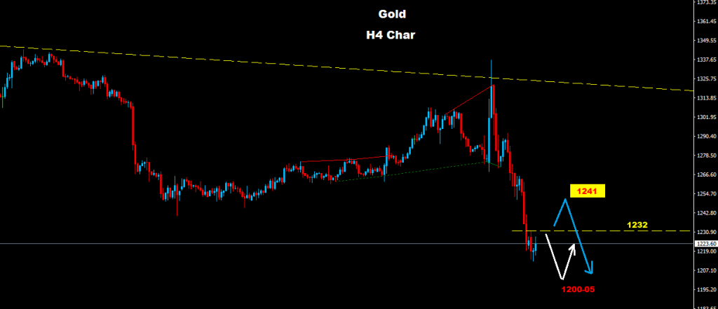 نجح الذهب بالتراجع تحت مستويات 1240 مما دفع بتفعيل موجه هابطه قد تضرب السوق نحو مستويات الدعم 05-1200