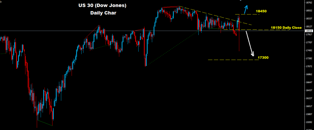 طالما الاغلاق اليومي مستمر تحت مستويات 18150 فان مزيد من التراجع و الهبوط سيكون متوقع نحو مستويات 17300