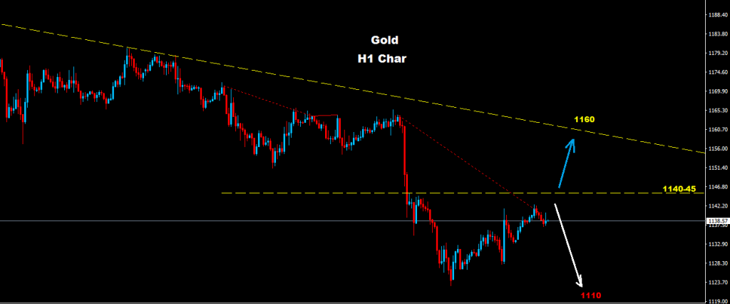 نجح الذهب بالحفاظ على الموجه الهابطة فيما مؤشرات المدى اليومي وجدت مستويات دعم على اسعار 1122 قبل ان تدفع بارتفاع تصحيحي بالسوق