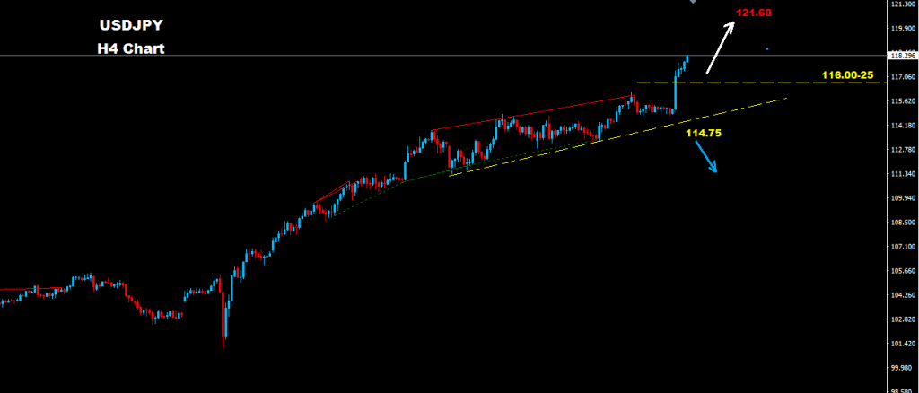 نجح الدولار/ين بالتوجه نحو اهداف منطقة 117.00-116.60 فيما استمر الصعود على اثر توجه الفدرالي لرفع اسعار الفائدة يوم امس