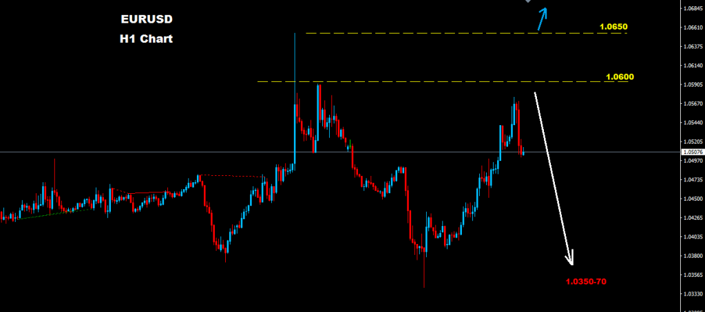 طالما السوق مستمر بالتداول تحت مستويات 1.0600 فان حركة تراجع و هبوط اخرى ستكون متوقعه نحو مستويات 70-1.0350