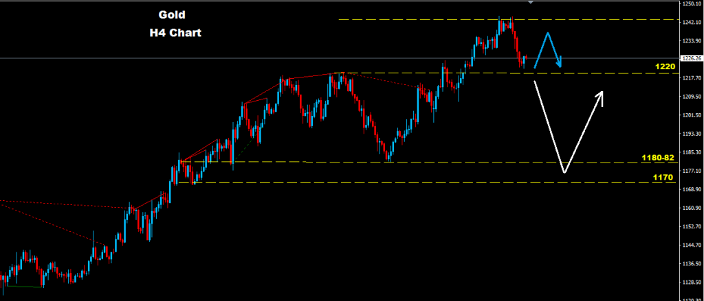 نجح الذهب بالحفاظ على مستويات الدعم 1220 فيما توجه لارتفاع تصحيحي نحو مناطق 1235