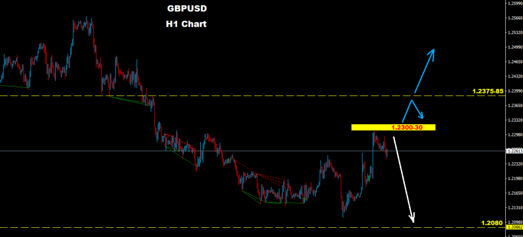 طالما السوق مستمر بالتداول تحت مستويات 30-1.2300 فان موجة هابطة قد تضرب السوق نحو مستويات 1.2080