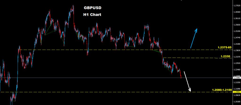 الموجة الهابطة الحالية بالسوق تمتلك مستويات مقاومة رئيسية على مناطق 85-1.2375 حيث و طالما السوق مستمر بالتداول تحتها فان الموجه الهابطة ستستمر على المدى القصير