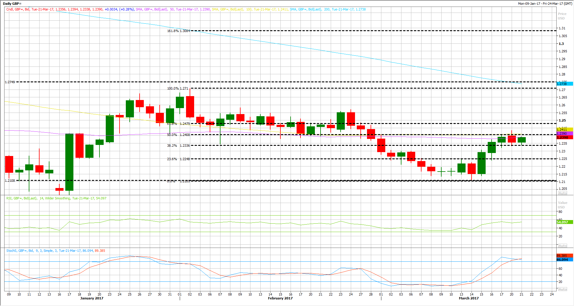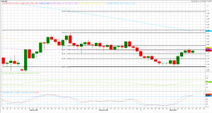 خلال تداولات يوم امس, اختبر الجنيه الاسترليني متوسط 50 يوم على المستوى اليومي ومستويات التصحيح بواقع 50% من الانخفاض الاخير الذي حصل للزوج كما هو موضح على الرسم. وهو ما يعني فرصة ضئيلة لاختراق الزوج للمستويات المذكورة بشكل سهل خلال الساعات المقلبة.