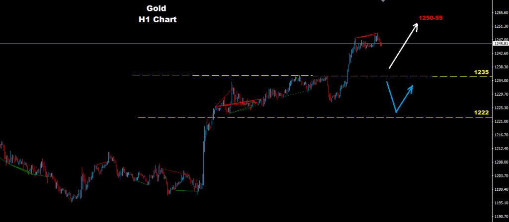نجح الذهب بالحفاظ على تداولاته فوق مستويات الدعم المقترحه سابقا هذا الاسبوع حيث نجح الذهب بضرب اهداف مناطق 55-1250