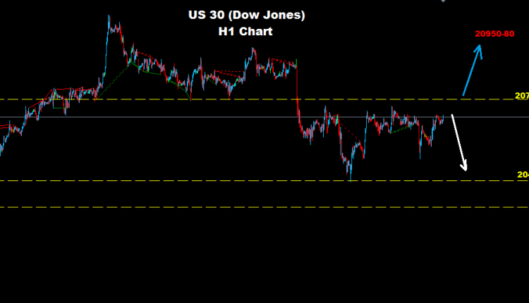 لا يزال مؤشر الداو يواجه مستويات مقاومة على اسعار 20780 حيث و طالما السوق يتداول تحت هذه المستويات فان فرص تراجع اخر قد يضرب السوق نحو مستويات 50-20400