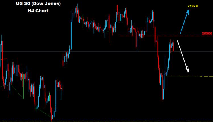 اي اختراق فوق مستويات 20900 مع اغلاق يومي فوقها قد تضع الداو ضمن مسار جديد صاعد نحو مناطق 21070 و 21170
