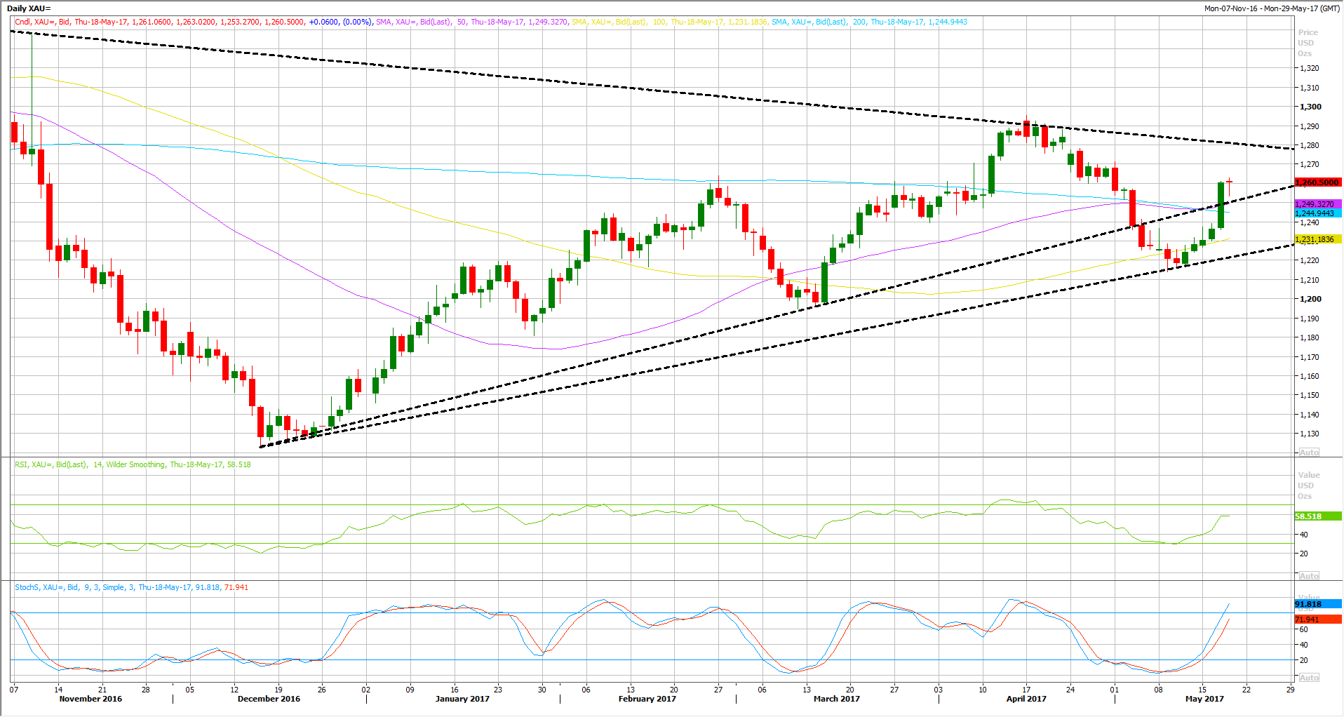 ارتفعت اسعار الذهب خلال تداولات يوم امس الى ما فوق المتوسطات المتحركة, لتسجل أكبر ارتفاع يومي لها منذ سبتمبر من العام الماضي, وهو ما يفتح المجال بشكل كبير لمزيد من الارتفاعات نحو مستويات 1270 دولار وما فوق خلال الايام المقبلة.