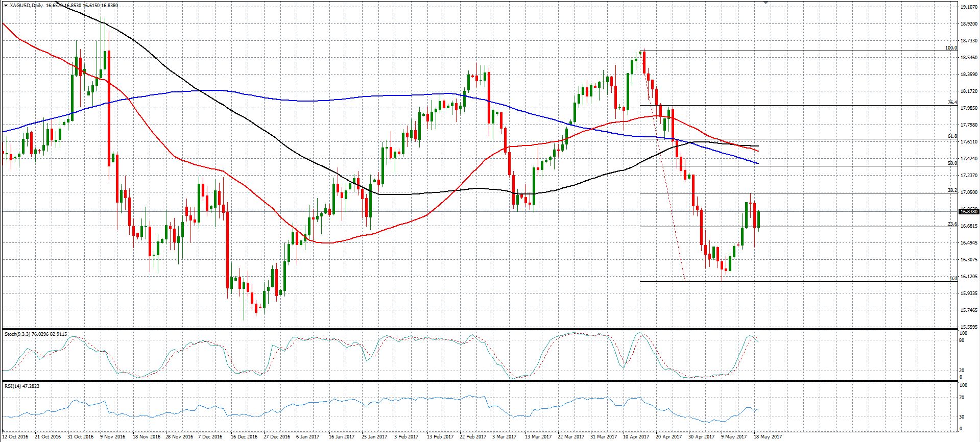 تبقى النظرة العامة للفضة حتى الحظة وعلى الرغم من توقعات ارتفاع الذهب بوتيرة اعلى ايجابية دون تغير طالما ان الفضة تتداول فوق مستويات 16.10.