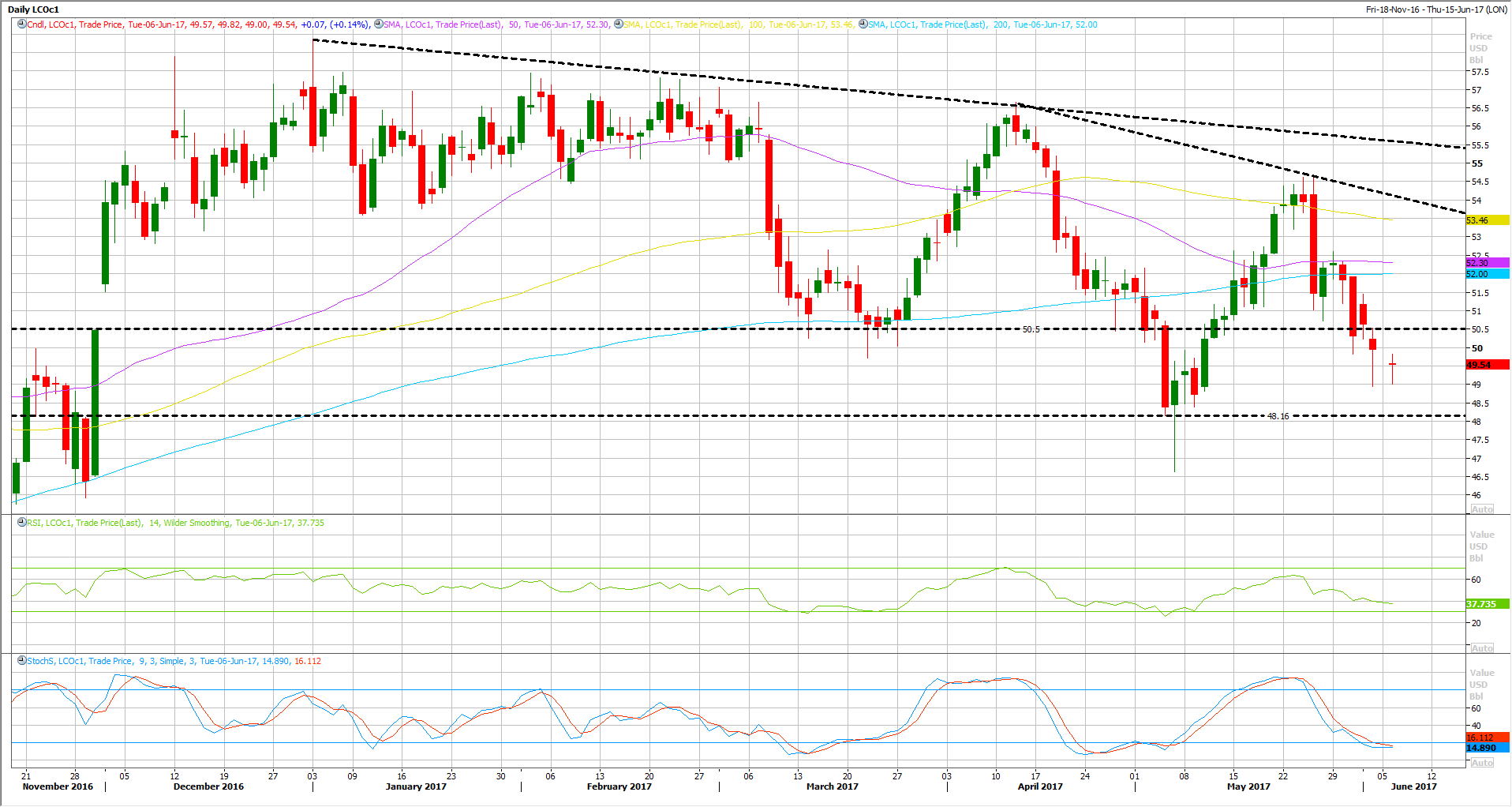 استقرت تداولات خام برنت خلال الفترة الماضية دون مستويات 50 دولار خلال اليومين الماضيين, وخصوصاً بعد ان كسر خام برنت مستويات الدعم التي كانت تتمركز عند مستويات 50.50 دولار للبرميل.