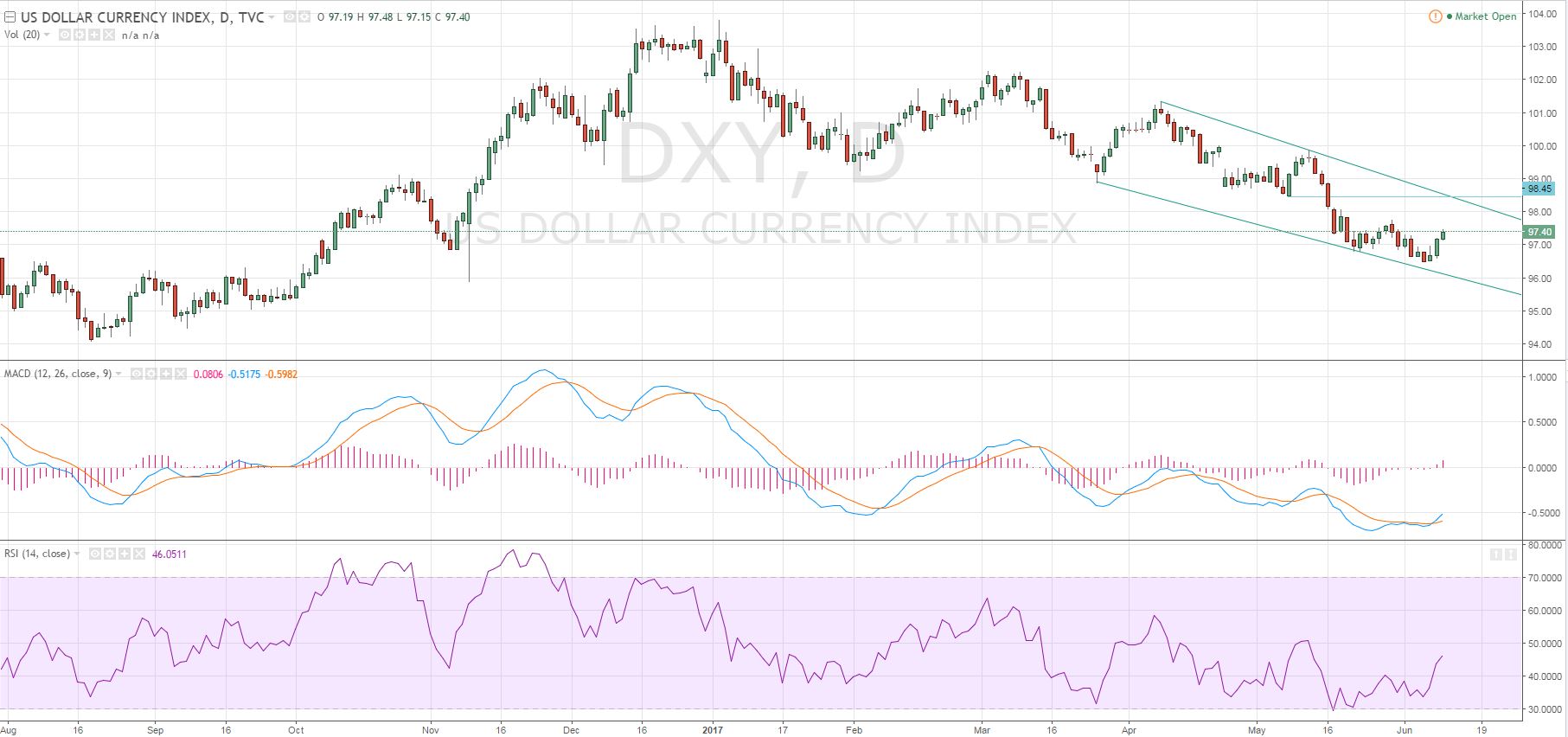 مع تداولات اليوم وحتى اللحظة, يسجل المؤشر العام للدولار الاميركي ارتفاعات لليوم الثالث على التوالي على المستوى اليومي وهو الشيء الذي لم يشهده الدولار منذ منتصف شهر مايو الماضي تقريباً, ليتداول عند مستويات 97.0 حتى كتابة هذا التقرير.