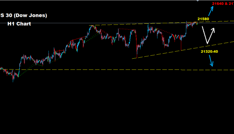 فوق مستويات 21580 فان السوق قد يتجة لمزيد من الصعود نحو اهدافنا الثانية لمستويات 21640 و 21770