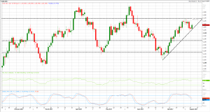 وفي نفس الوقت, الذهب كان قد ارتفع من جديد خلال تعاملات اليوم من خط الاتجاه المرتفع على المستوى اليومي كما هو موضح على الرسم ليضيف حوالي 10 دولارات تقريباً.
