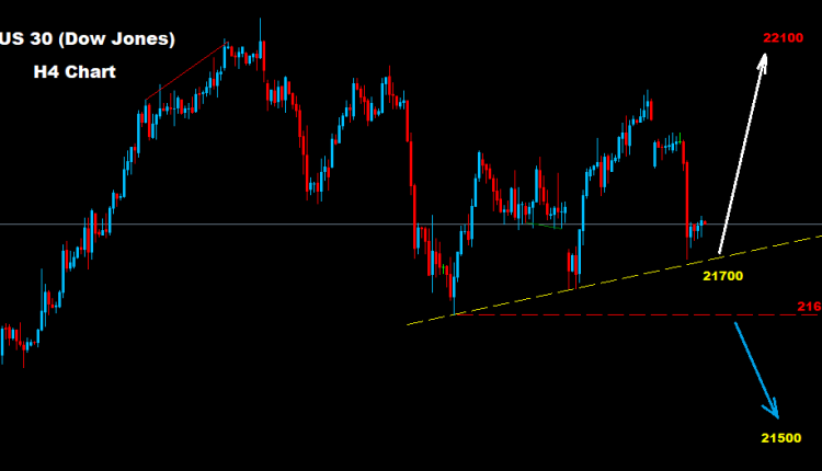 كما نرى على الرسم البياني فان مؤشر الداو لا يزال يحافظ على تداولاته فوق مستويات الدعم للترند الصاعد حيث و طالما السوق يحافظ على تداولاته فوق مستويات 21700 فان مزيد من الارتفاع سيكون متوقع نحو اهداف 22100