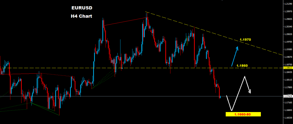 كما اشرنا له يوم امس و طالما السوق متماسك تحت مستويات 1.1860 فان مزيد من التراجع نحو مناطق 1.1680-1.1700 سيكون متوقع