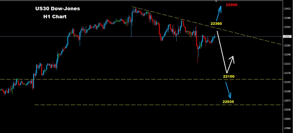 نجح مؤشر الداو بضرب اسعار تحت مستويات 22280 كمؤشر على مزيد من التراجع و الهبوط القادم بالسوق
