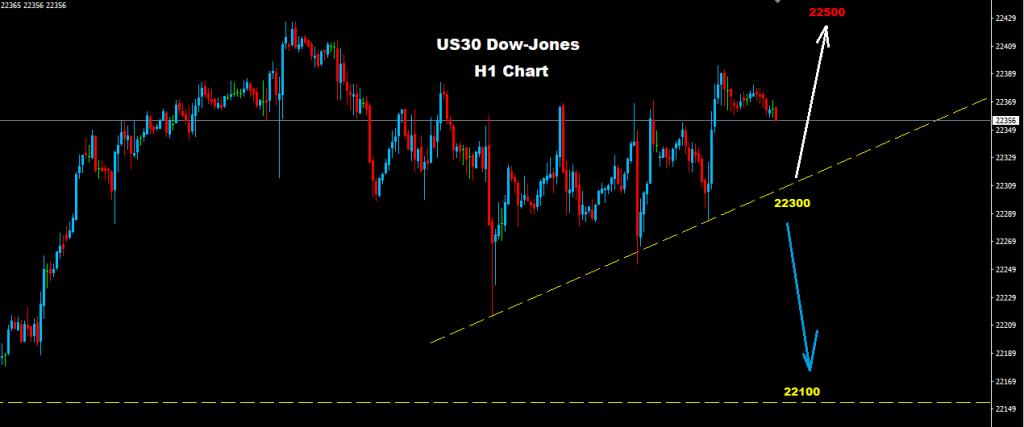 كما نرى على الرسم البياني فان مؤشر الداو يواجه مستويات دعم للترند الصاعد على اسعار 300-22280 حيث و طالما السوق متماسك فوق هذه المستويات فان مزيد من الارتفاع نحو مستويات 22500 سيكون متوقع