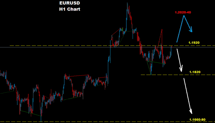 فوق مستويات 1.1920 فان السوق قد يتجه لمزيد من التقدم و الصعود نحو مناطق 40-1.2020 قبل ان تعود ضغوط الهبوط على السوق