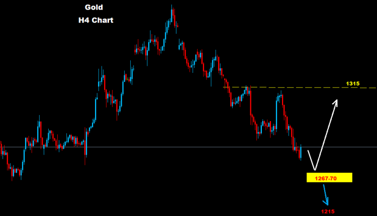 تحت مستويات 1267 فان الذهب قد يدخل ضمن اطار موجة تراجع و هبوط جديدة قد تستهدف مستويات 1215