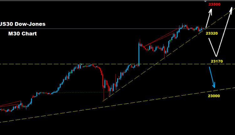 لا تزال الموجة الصاعدة على مؤشر الداو فعاله بالسوق كما اشرنا لها الاسبوع الماضي حيث تمكن السوق من ضرب اسعار الهدف لمستويات 23360