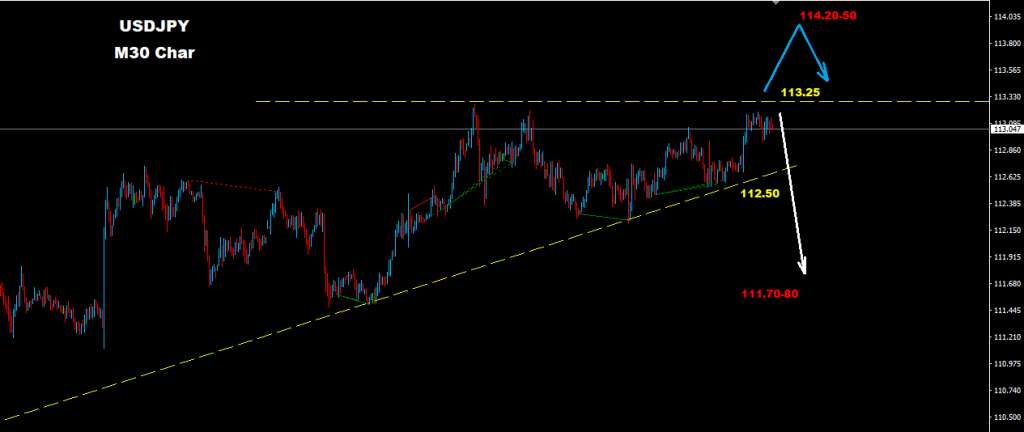 فوق مستويات 113.25 فان مزيد من الارتفاع و التقدم قد ييطرا نحو مستويات المقاومة 50-114.30 قبل ان يتجه السوق منها لتراجع تصحيحي بالسوق
