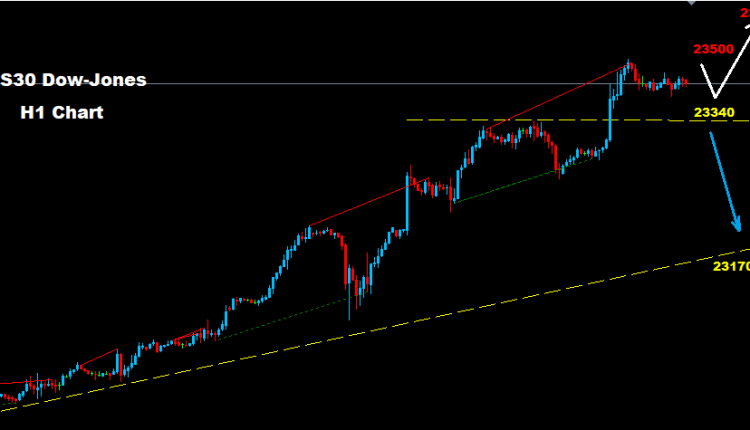 نجح مؤشر الداو تقريبا بضرب اهداف مستويات 23500 بتقصير ما يقارب 15 نقطة فقط بالسوق