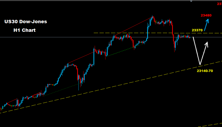 فوق مستويات 23370 فان مزيد من الارتفاع لاعادة اختبار مستويات 23480 قد تضرب السوق , فيما و فوق هذه المستويات فان مزيد من الارتفاع نحو مستويات 23620 قد تكون له فرصه بالسوق
