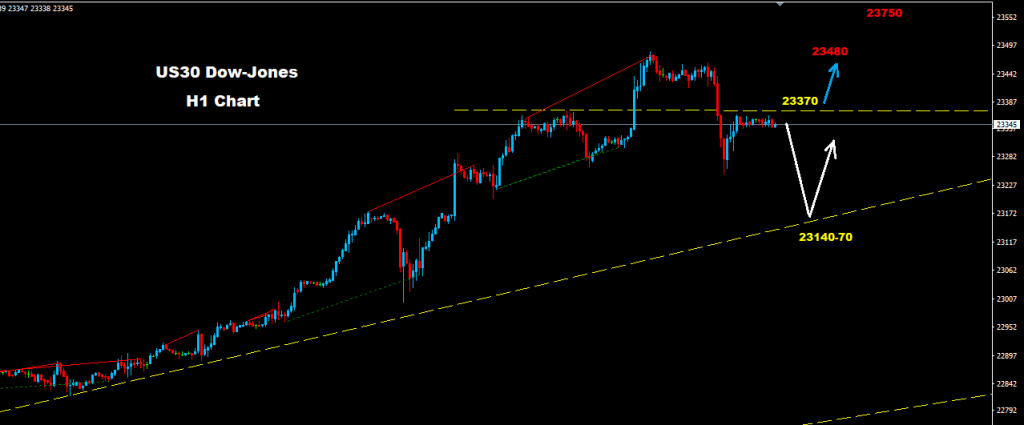 فوق مستويات 23370 فان مزيد من الارتفاع لاعادة اختبار مستويات 23480 قد تضرب السوق , فيما و فوق هذه المستويات فان مزيد من الارتفاع نحو مستويات 23620 قد تكون له فرصه بالسوق