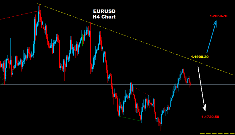 فوق مستويات 1.1920 فان موجة ارتفاع جديدة قد تضرب السوق نحو مستويات 1.1980 و 1.2050