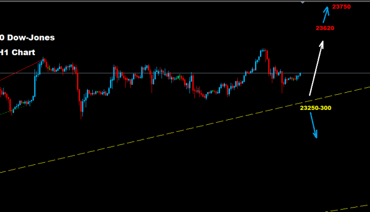 طالما السوق متماسك فوق مستويات الدعم للترند الصاعد حول اسعار 300-23250 فان مزيد من الارتفاع سيكون متوقع نحو مستويات 23620 و 23750