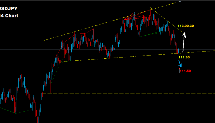 تحت مستويات 111.90 مزيد من التراجع سيكون متوقع مع تواجد مستويات دعم على اسعار 111.50 و التي قد تدفع بدورها بارتفاع تصحيحي