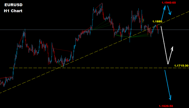 فوق مستويات 1.1880 فان السوق سيمتلك فرص التوجه لاعادة اختبار مستويات المقاومة 60-1.1940 والتي بدورها ستجدد فرص التراجع و الهبوط نحو مستويات 30-1.1715
