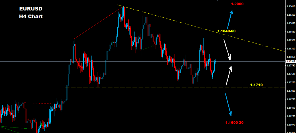 لا يزال اليورو يحافظ على منطقة التداول ضمن المدى القصير بين مستويات 1.1710 و 1.1860