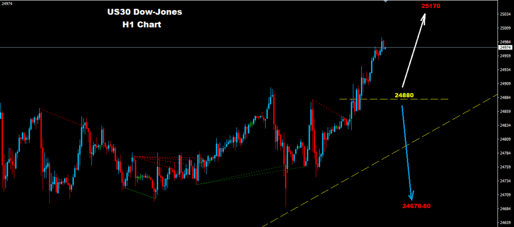 نجح مؤشر الداو مبكرا اليوم بالتوجه نحو اهداف مستويات 24980 كما اشرنا له سابقا