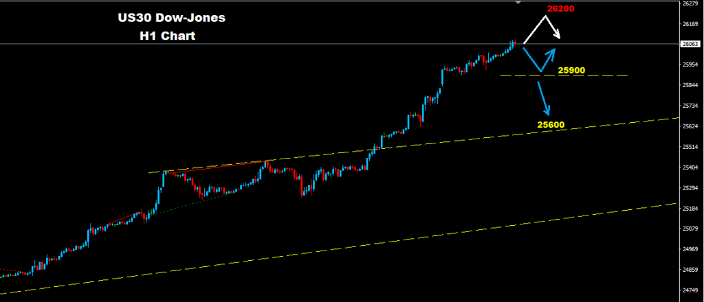 فيما و طالما السوق متماسك فوق مستويات الدعم 25900 فان الموجة الصاعدة ستستمر نحو مستويات 26200 و 26350